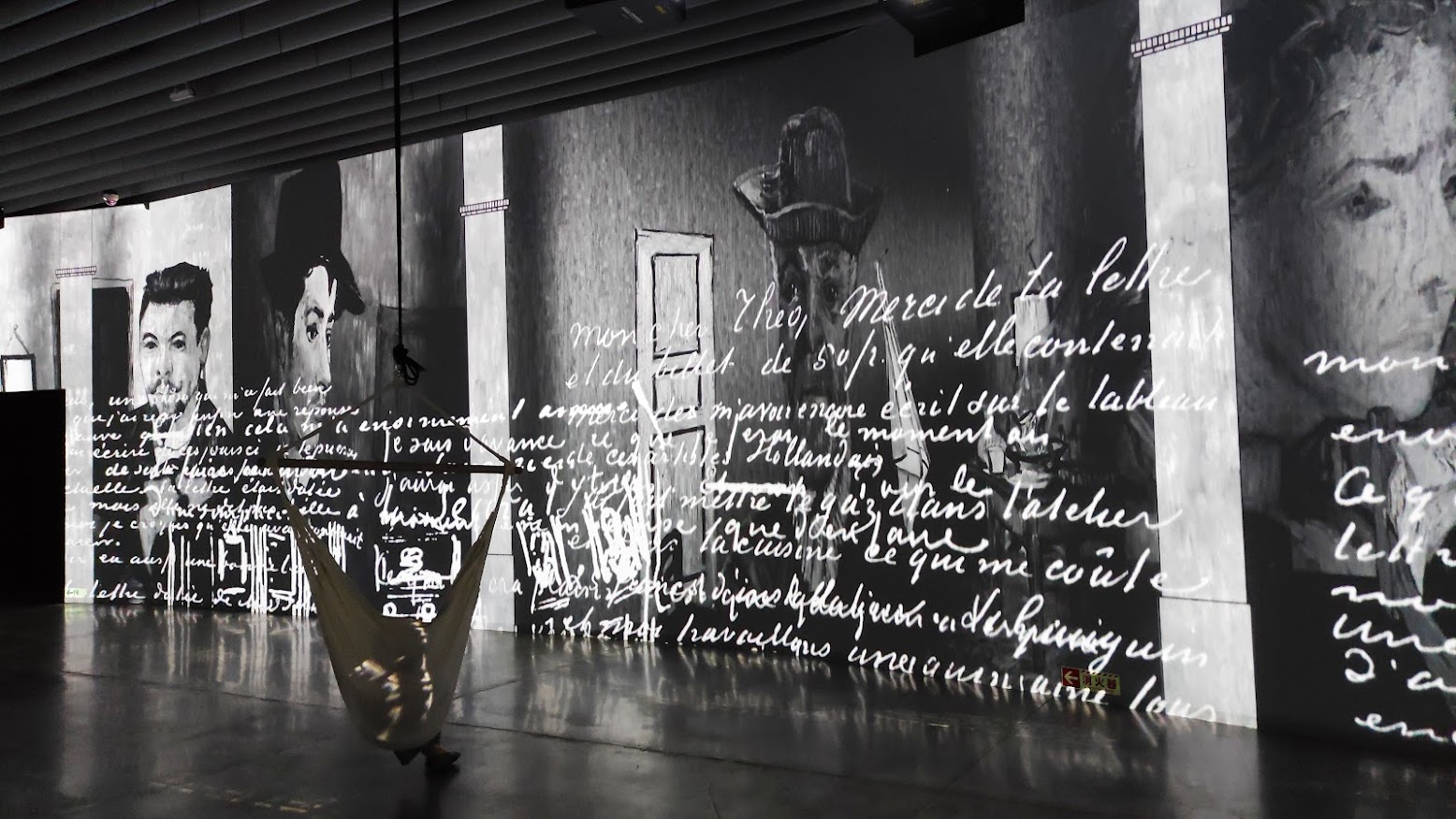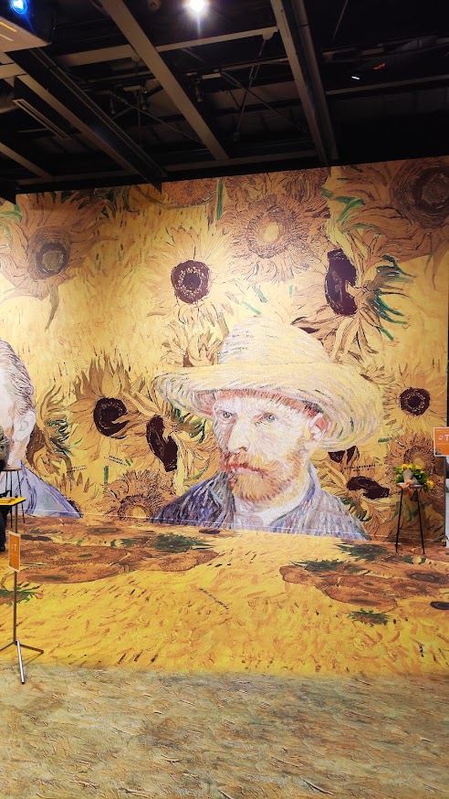 例えばパリの街の絵だと、部屋の床全面に石畳が映るので、そこを歩くと(一応シアター? インスタレーション?なのに座っても立っても歩いてもいいんです)当時のゴッホになってパリの石畳を歩いてる感覚に簡単になりました。最近感情が豊かすぎて、結局この人こんなつらいまま自殺しちゃうんだとか思って辛くなりました。